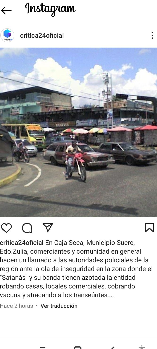 En Caja Seca, Municipio Sucre, Edo.Zulia, comerciantes y comunidad en general hacen un llamado a las autoridades policiales de la región ante la ola de inseguridad en la zona donde el «Satanás» y su banda tienen azotada la entidad robando casas, locales comerciales, cobrando vacuna y atracando a los transeúntes….