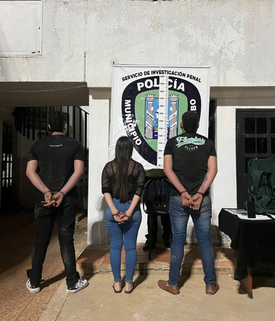 De inmediato, quedaron detenidos los 3 ciudadanos, quedando identificados como Carlos Daniel Bernadoni Mendez de 21 años, José Ángel Vera Mercado de 24 y Pierina Patricia Rivero Pereira de 27 años.